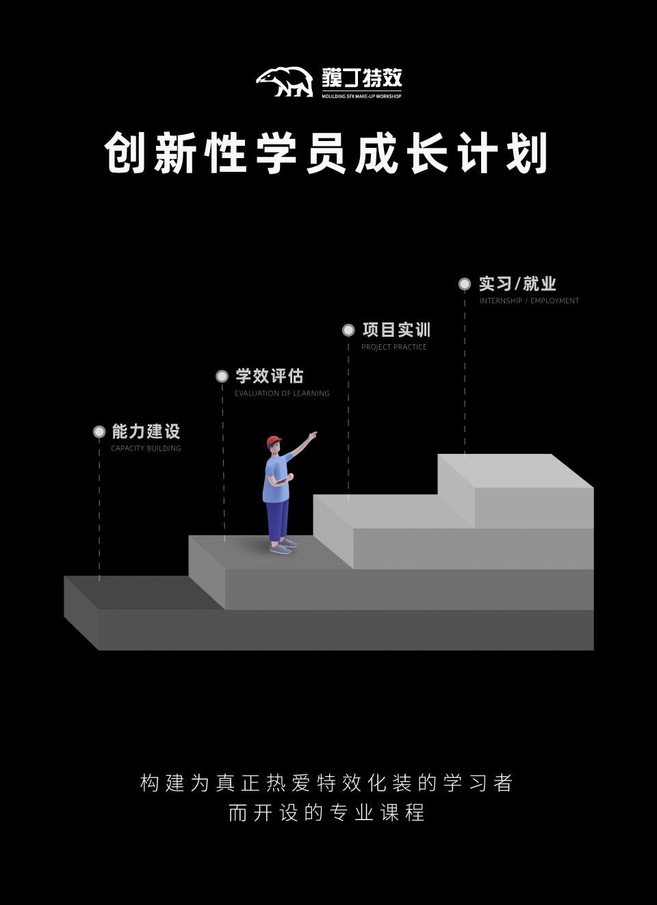 特效化裝發展史講解 劇組職能及工作流程 劇本分析 特效化裝經典人物造型妝面解析 特效化裝專業材料講解 現場突發事件緊急預案 整體人物造型設計概念