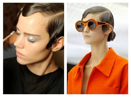 PRADA 2011春夏米蘭時裝周上,造型師把頭發用一些剛勁啫喱潤濕,用梳子和手推出波紋的形狀,打造“濕推手推波紋”的效果。