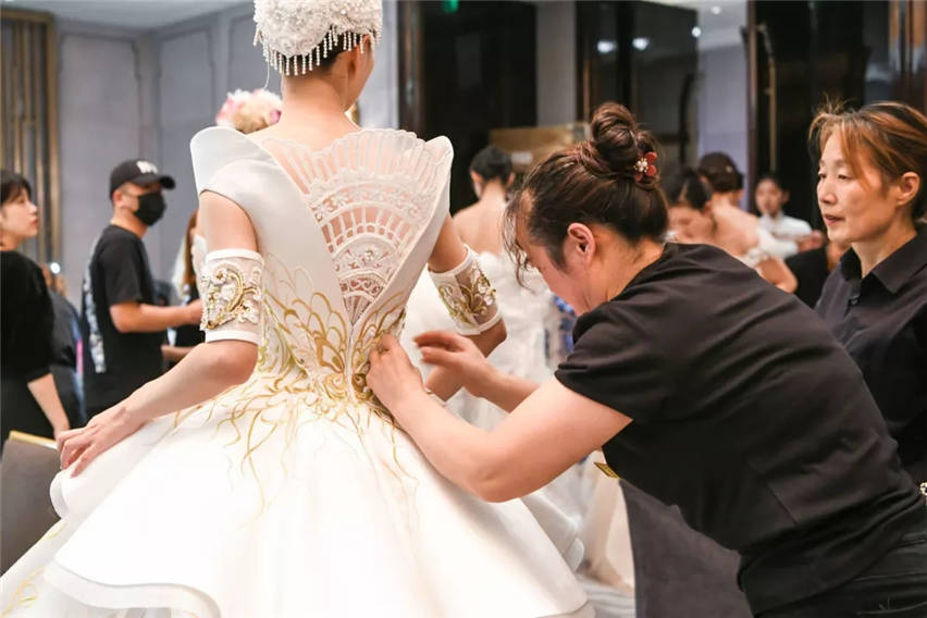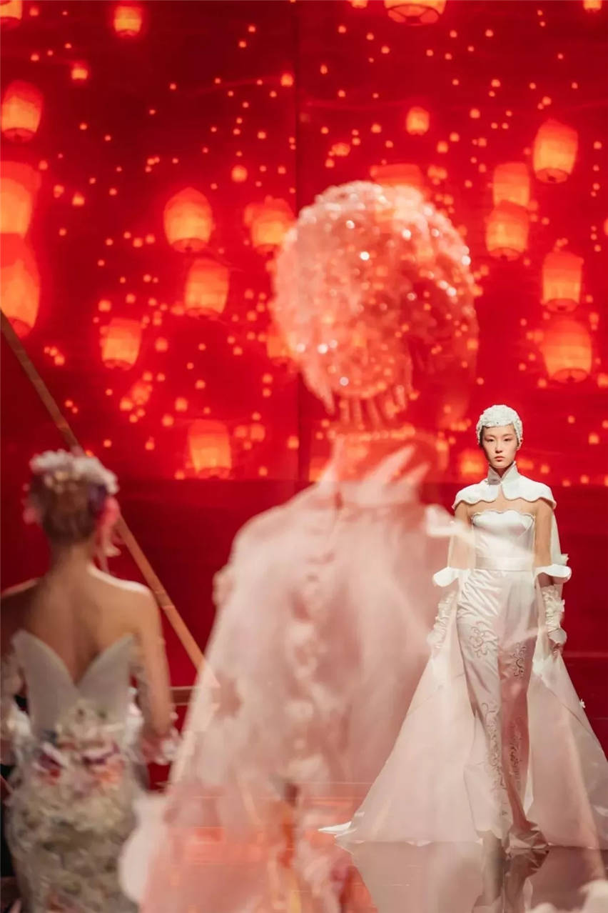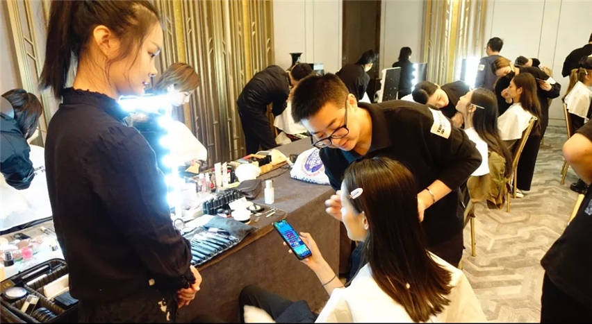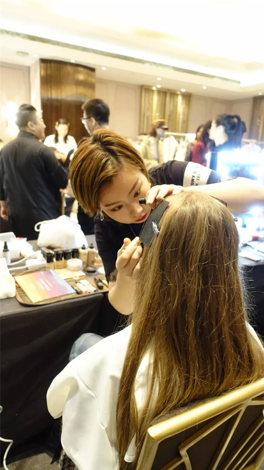 由我校師生幾十人組成的強大造型團隊,為美輪美奐的禮服大秀帶來了無限驚喜,加持了大秀的時尚簡約與仙氣逼人。