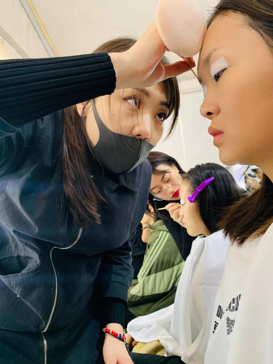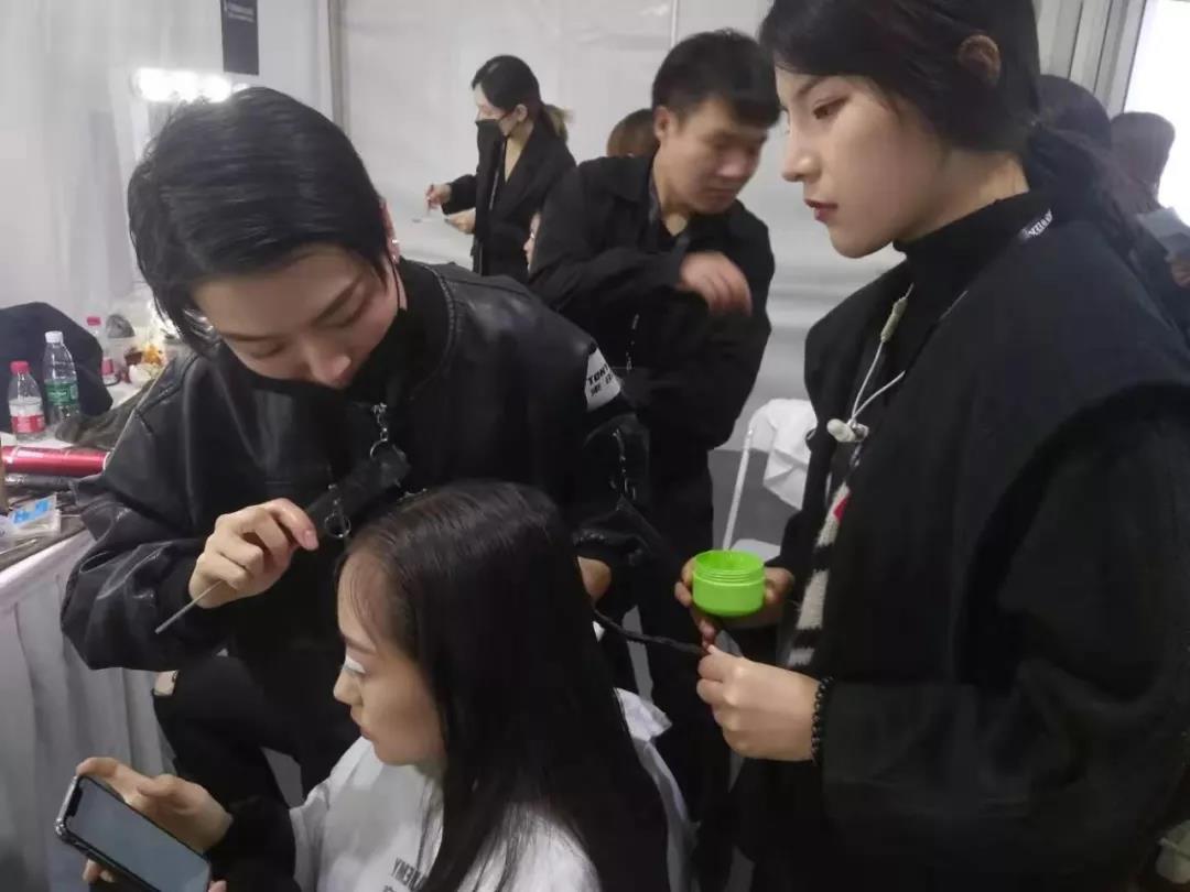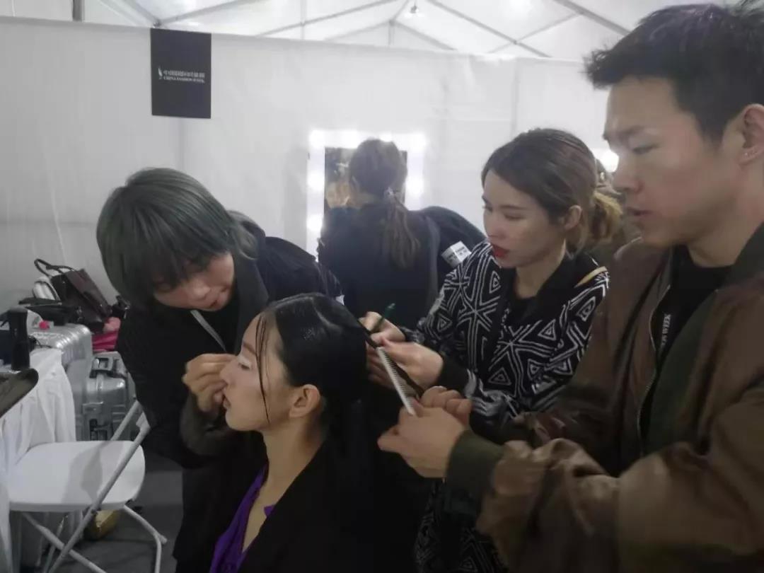 為了配合品牌簡約而不簡單的理念,我校學員在談天老師的指導下,從發型到妝容,都做了細節化的處理,保證了整個造型感與服裝的協調。