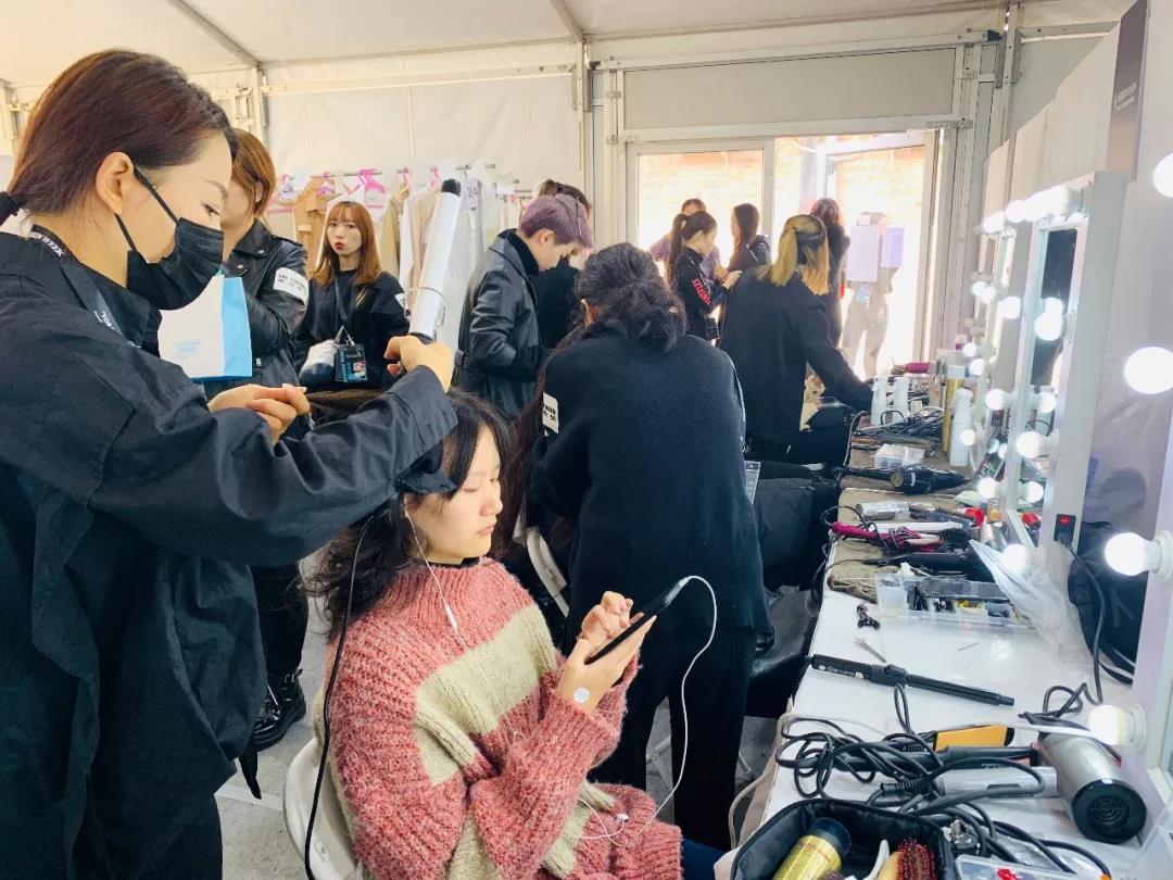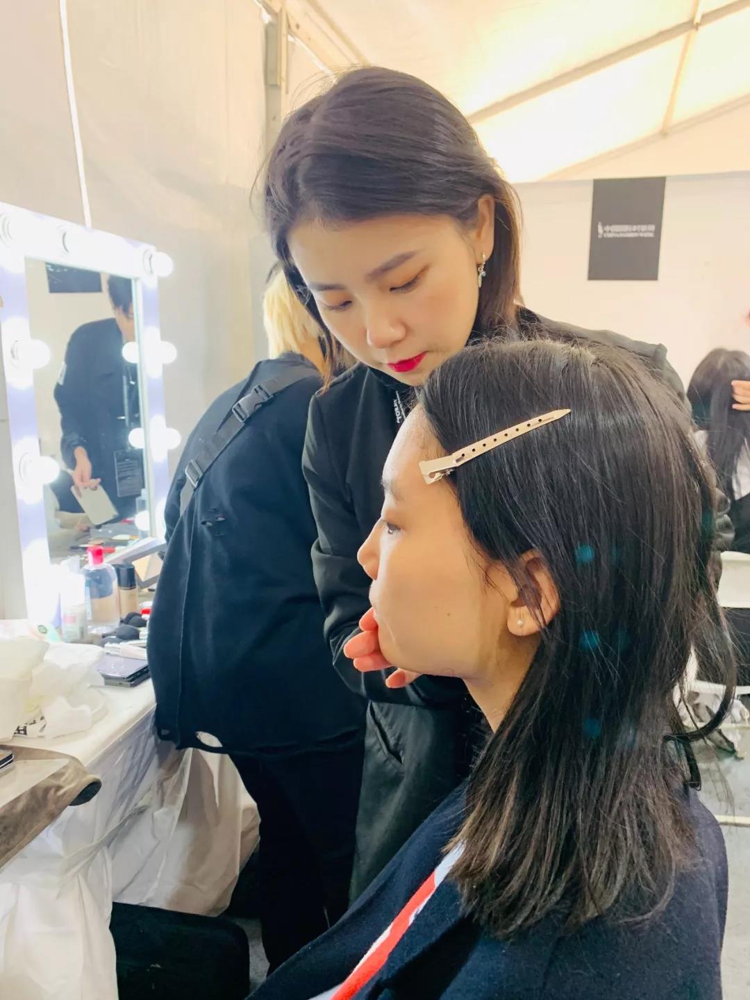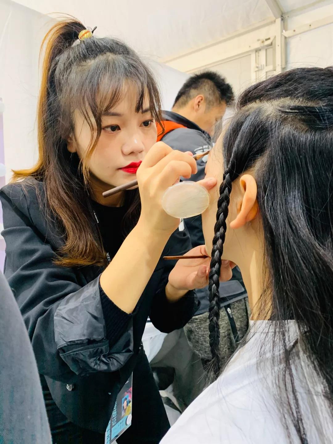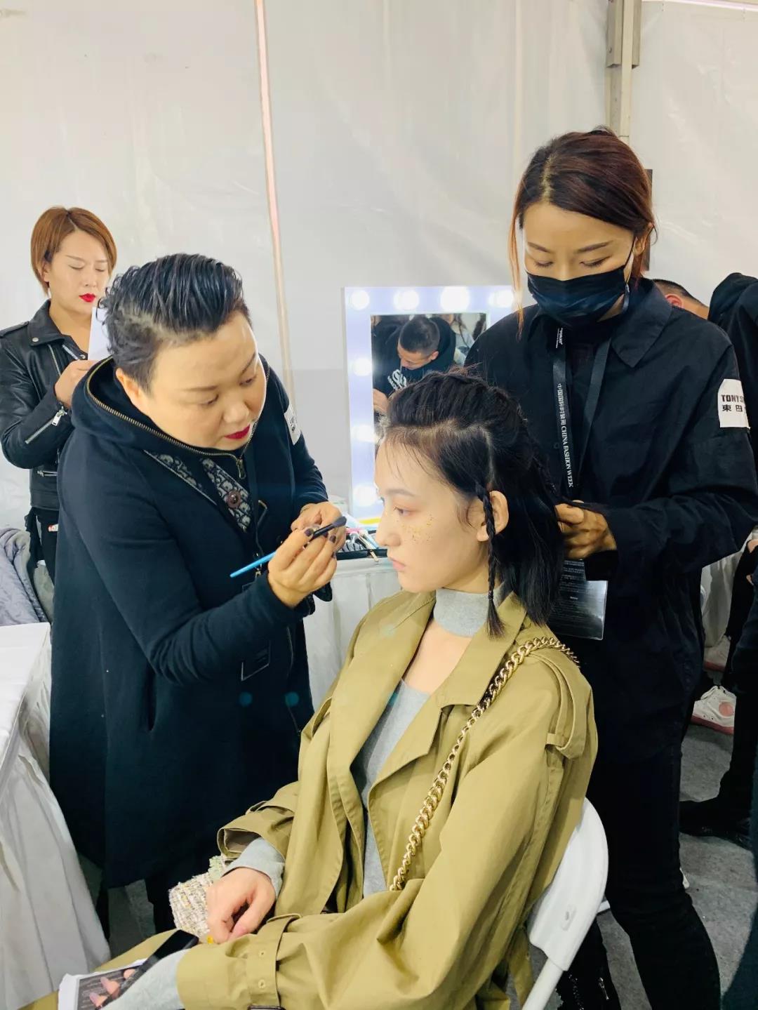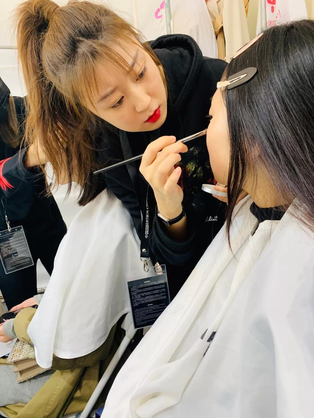 我校學(xué)員在聶影老師的帶領(lǐng)和指導(dǎo)下完成了整場秀的妝發(fā)造型工作。