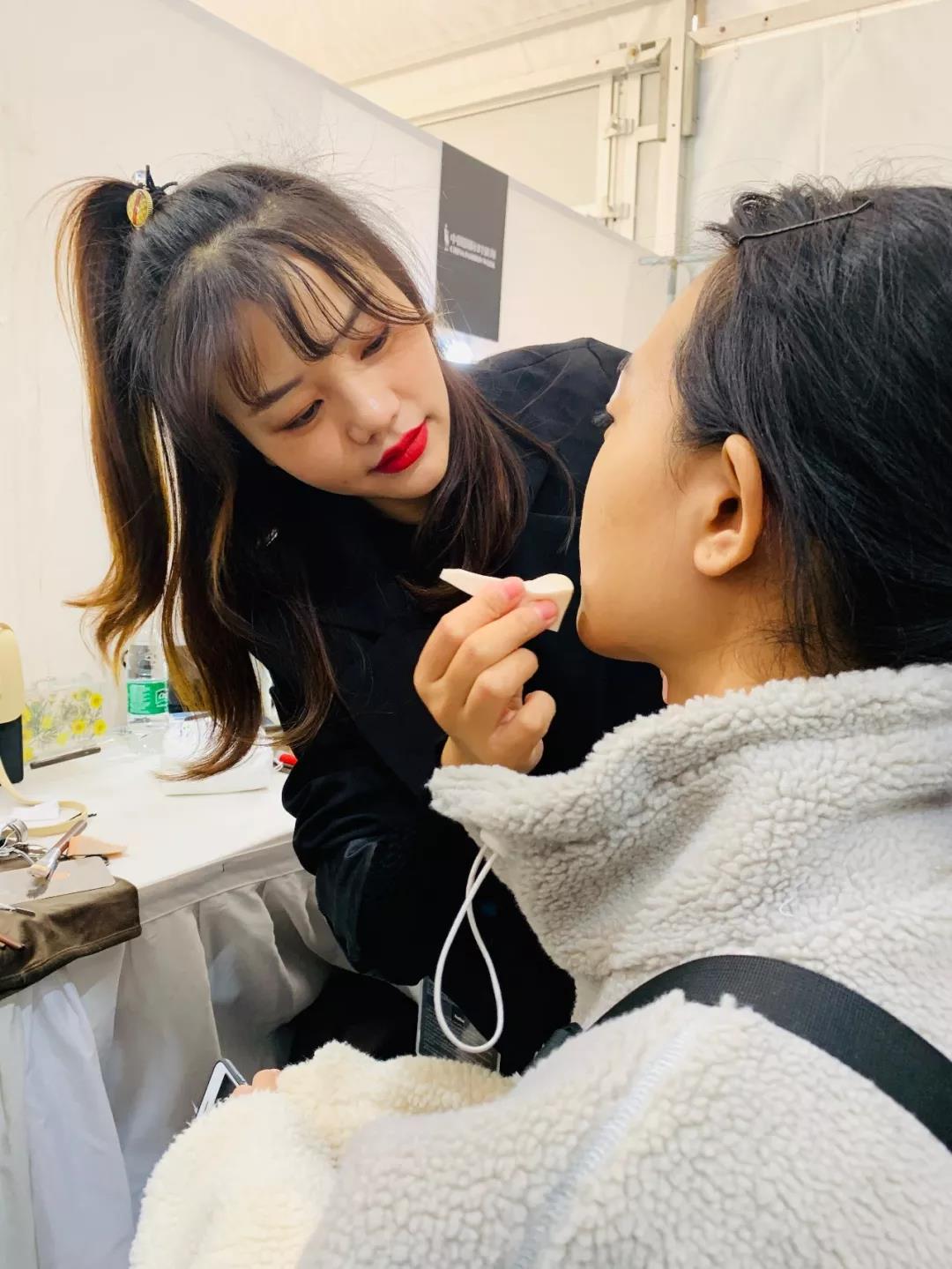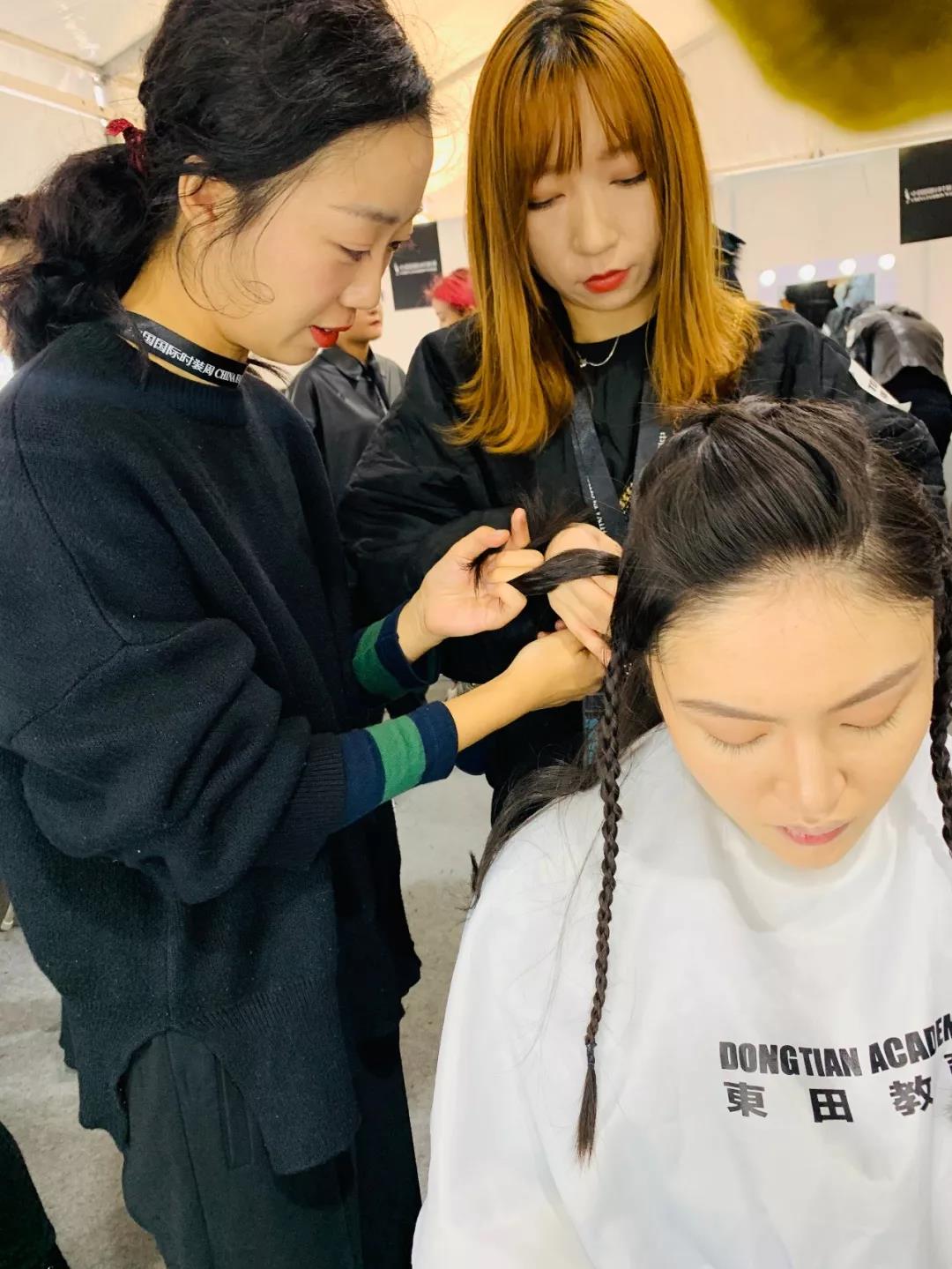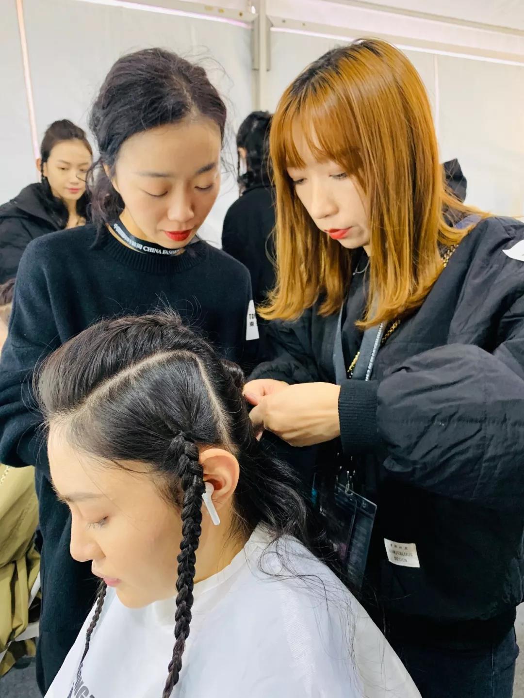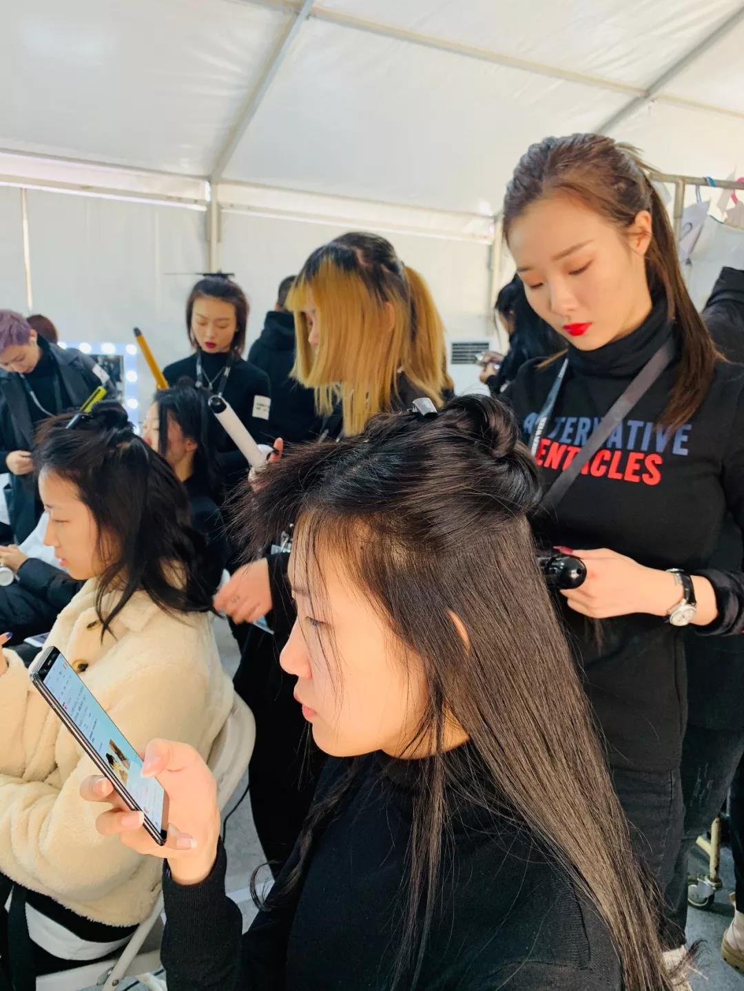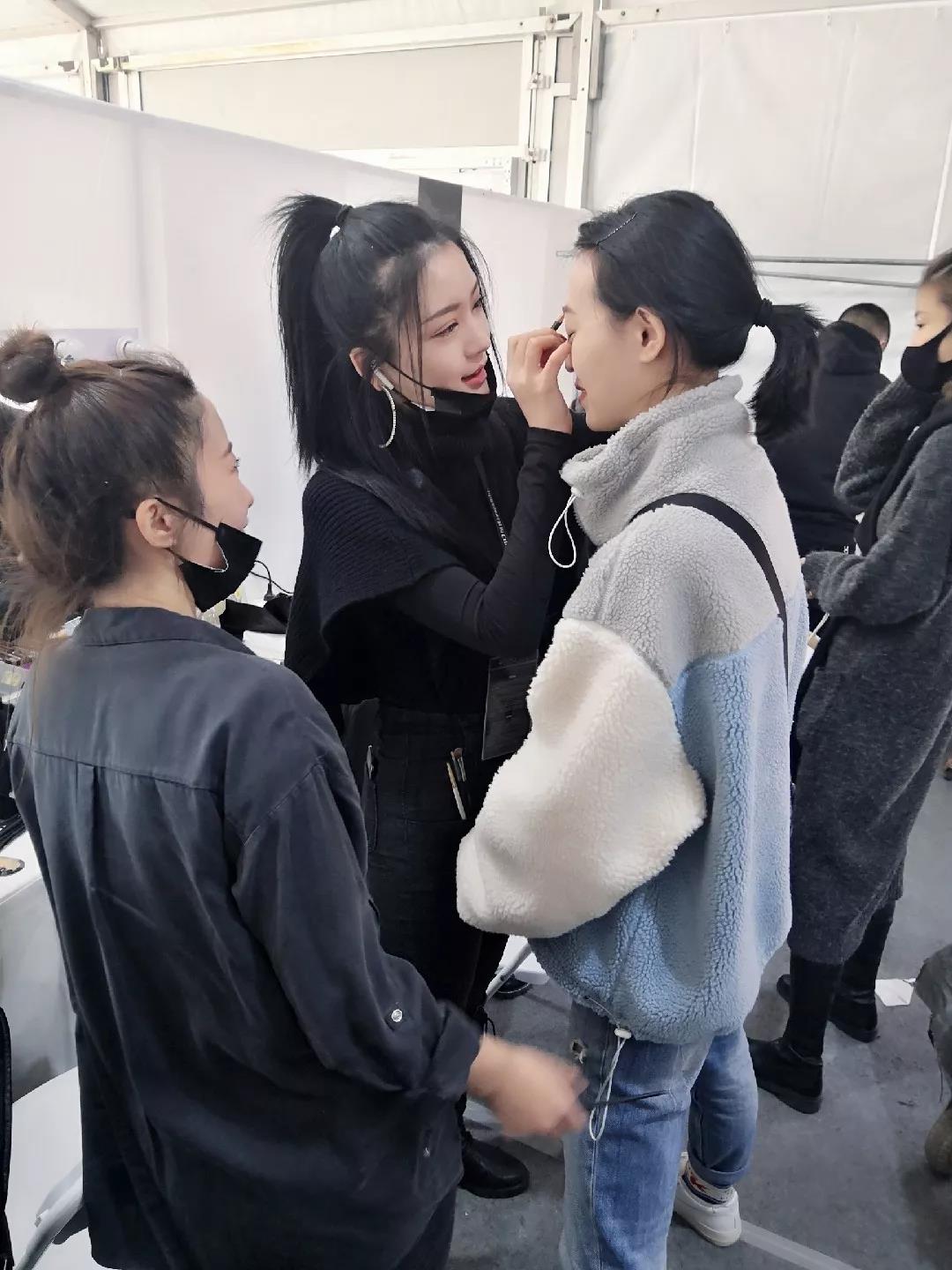 我校學(xué)員在聶影老師的帶領(lǐng)和指導(dǎo)下完成了整場秀的妝發(fā)造型工作。