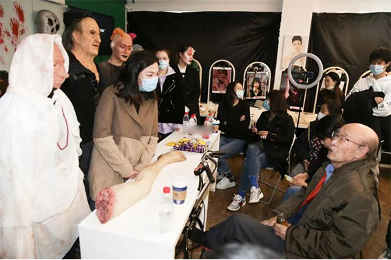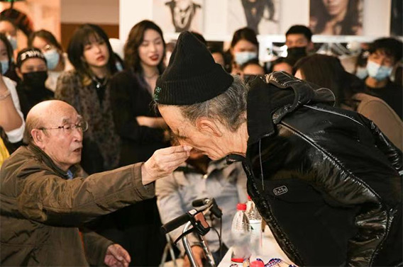 2021年,93歲高齡出席我校影視79期學員塑形效果畢業作品展,并對同學們的作品予以肯定,鼓勵新人扎根技術,大膽探索,勇于創新。