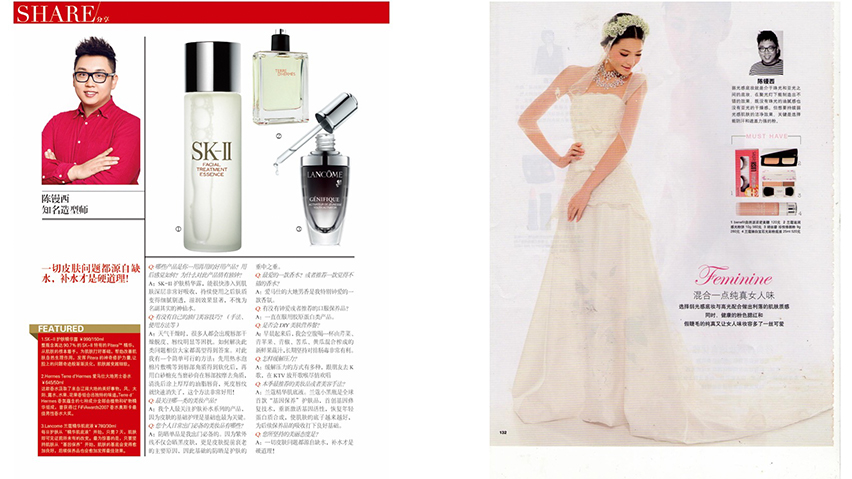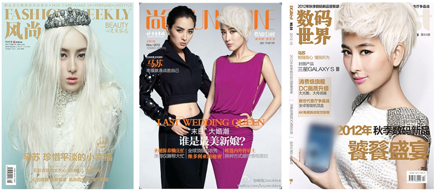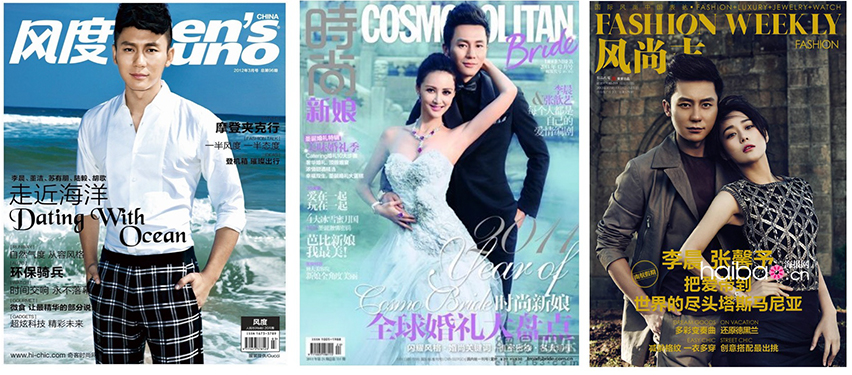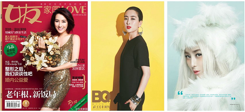 《時尚COSMO》、《悅己SELF》、《瑞麗RAY》、《時尚健康》、 《男人裝》、《嘉人MARIECLAIE》、《VOGUE服飾美容》、《時尚芭莎BAZAAR》、《時尚座駕》、《時尚新娘》、《時裝OFFICIEL》、《昕薇VIVI》、《世界時裝之苑ELLE》等。