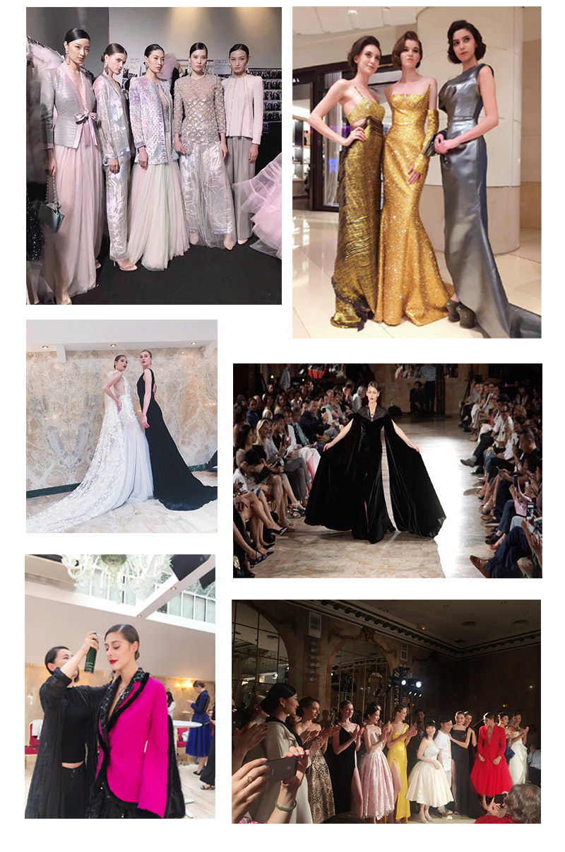 合作的秀場:Fendi、Maxmara、Armani、呂燕commemmi、Louis Vuitton、胡社光、郭培、JORYA、BvlgariFesta、藝之卉、史宏偉、王陶、鄂爾多斯、郭奴、Vivienne tam、EP雅瑩、Maryma、法國巴黎高定時裝周、北京國際時裝周 、梅賽德斯時裝周、751大學生時裝周