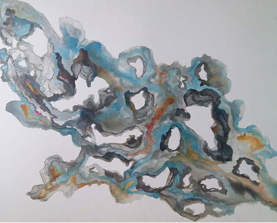2014年創作:《不可知的世界》綜合繪畫,中央美術學院多功能廳。