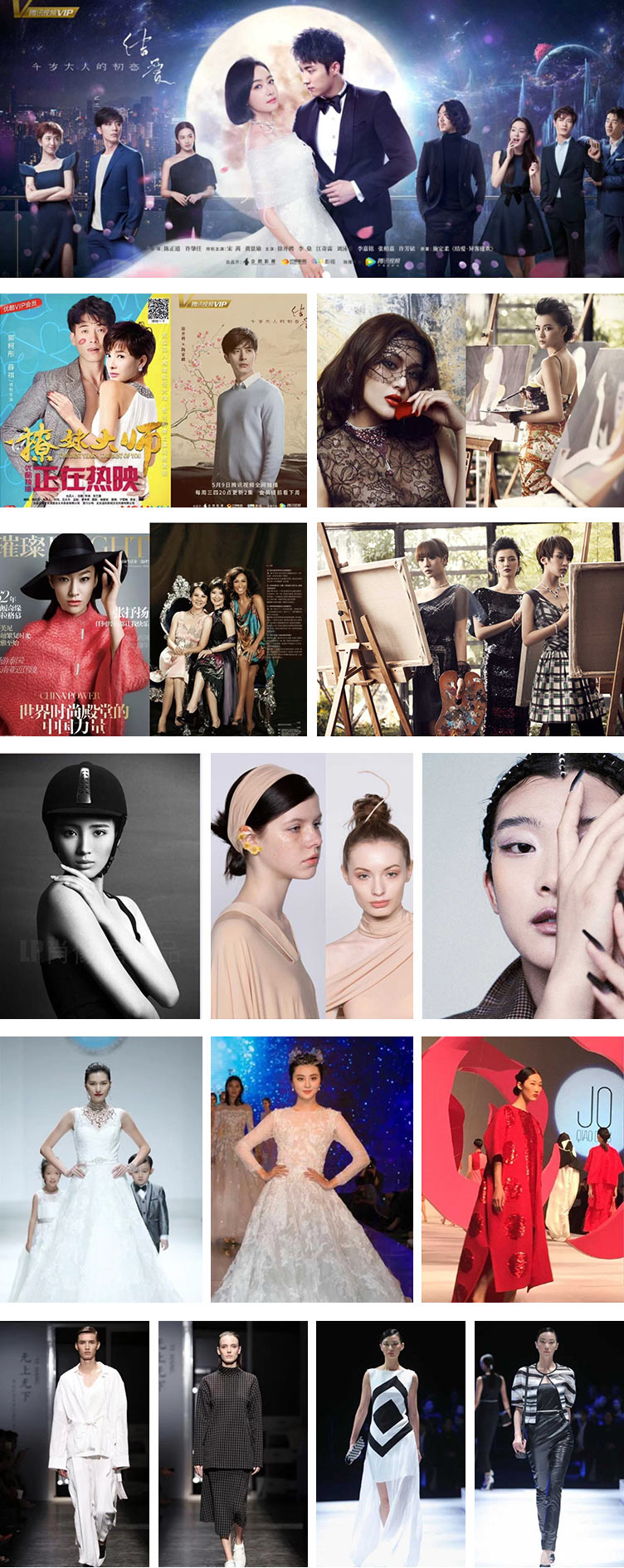 CCTV、BTV、湖南衛視、深圳衛視、旅游衛視、環球旅游頻道、車迷頻道等、龍騰精英、 新絲;、東方賓利、模特線;、ESEE英模、蘋果IPHONE,阿迪達斯、小米,奧迪、寶馬、 佳能、北大時尚課堂、新面孔模特、聯想、李寧、胡軍、諾基亞、方正、中鐵、中航、 360、人人網、哈嘍魔鏡、胡社光、Baker、CHINA DAILY、中國人,、騰訊、搜狐、新 浪、MOKO、時尚新娘、White-collar、阿迪達斯、七彩云南、伊維斯、足力健等。《精 品購物指南》、《騰訊QQ汽車》、《人像攝影》、《男人裝》、《優雅》、《風尚志》、 《美容美發化妝師》、《相機Gigil》、《世界汽車雜志》、《旅游世界地理》、《型 格》、《璀璨》等。
